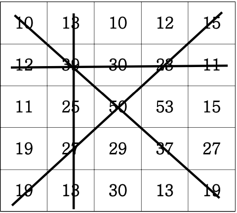 ๋ค์๊ณผ ๊ฐ์ด 5*5 ๊ฒฉ์ํ์ ์ซ์๊ฐ ์ ํ ์๋ค.
