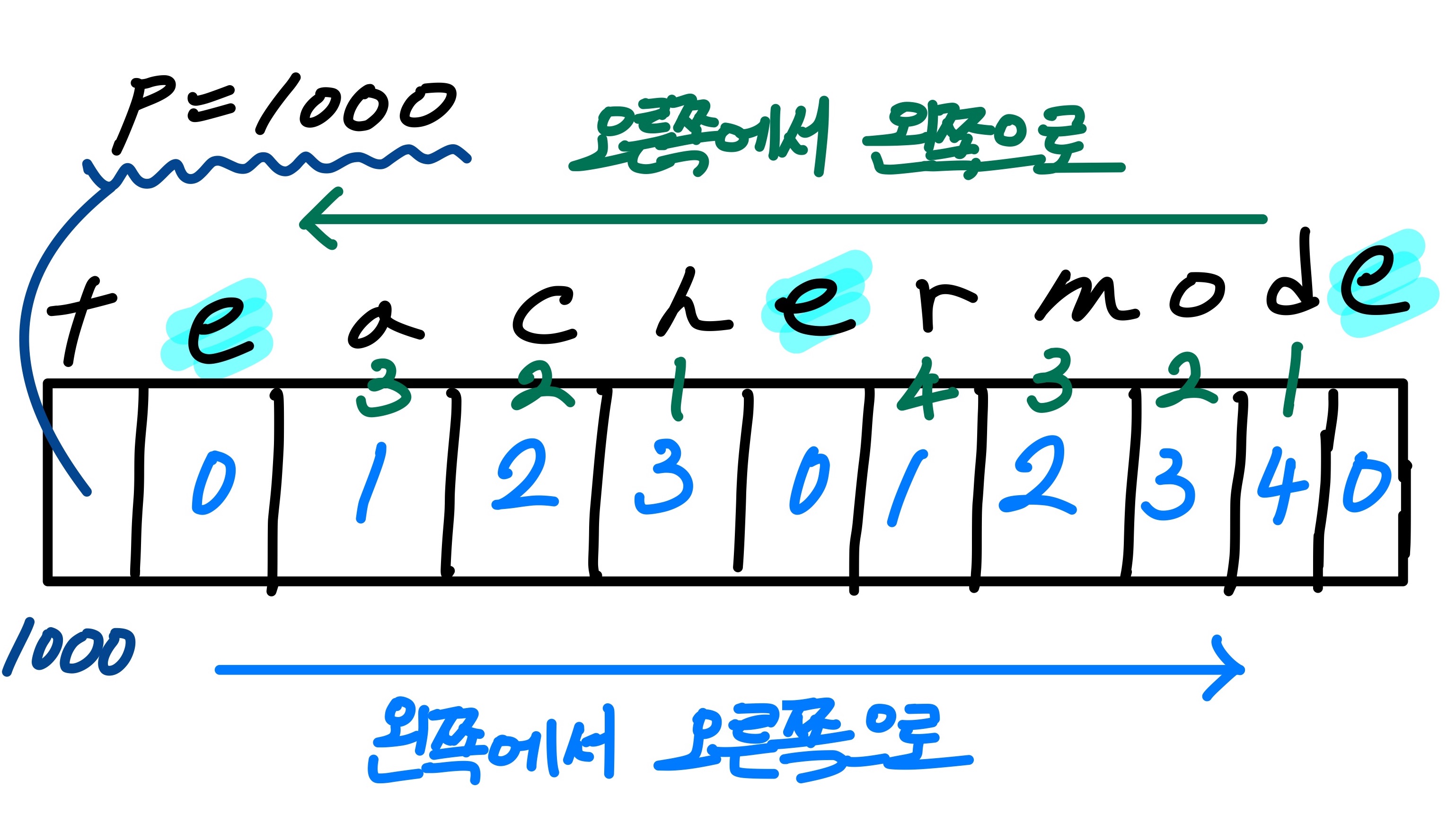 ์ต์ ๊ฑฐ๋ฆฌ๋ฅผ ๊ตฌํ๊ธฐ ์ํด์๋ ์ค๋ฅธ์ชฝ์์ ์ผ์ชฝ์ผ๋ก ์ํํ์์๋ ๊ธฐ์ค์ ๋ฌธ์ t์ ์ค๋ฅธ์ชฝ์ผ๋ก๋ถํฐ ์ผ๋ง๋งํผ ๋จ์ด์ ธ ์๋์ง ๋ํ ๊ณ์ฐํด์ค์ผ ํ๋ค.