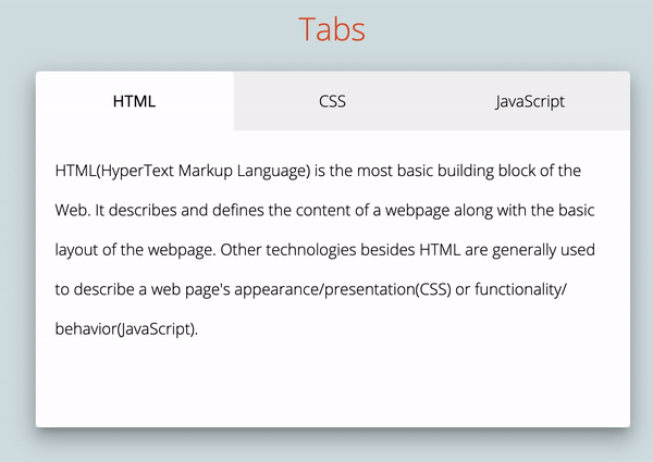 ์์ ๊ฐ์ด Tabs-Content๋ฅผ ๋ง๋ค ๋ ๊ฐ Tab์ ๋๋น๋ 200px๋ก ์ผ์ ํ๊ณ ๋ฐ์ค ๋ด์ ๋ค์ด๊ฐ๋ Tab์ ๊ฐ๋ณ์ ์ด๋ค.์ฆ, CSS ์์์ Width์ ๊ฐ์ ์ ์ ์ผ๋ก ์ฃผ๊ฒ ๋๋ฉด ์ ์ ์ธ Tabs๋ฅผ ๋ง๋ค์ง ๋ชปํ๋ค.