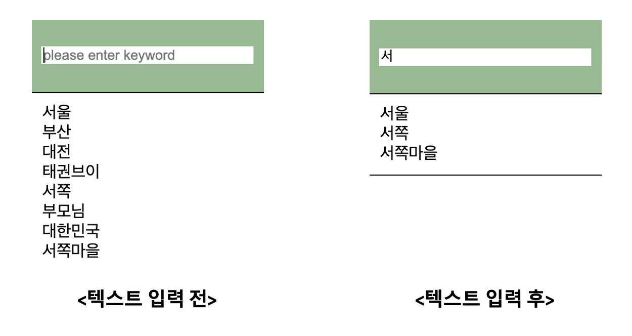 ๊ฒ์์ด๋ฅผ ์ ๋ ฅํ๋ ๋์์ ์ํฐํค, ๊ฒ์ ๋ฒํผ์ ๋๋ฅผ ํ์ ์์ด ๊ฒฐ๊ณผ๊ฐ์ ์ฆ์ ๋ฐ์ํ ์ ์๋๋ก ๋ค์๊ณผ ๊ฐ์ด ๊ตฌํํ์๋ค.